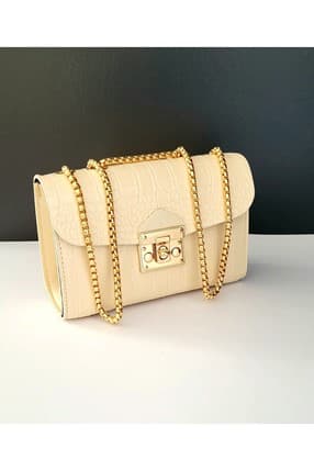 BOHEMIAN BOUTIQUE Diana Model Bej Renk Krokodil Desen Zincir Saplı Omuz Çanta