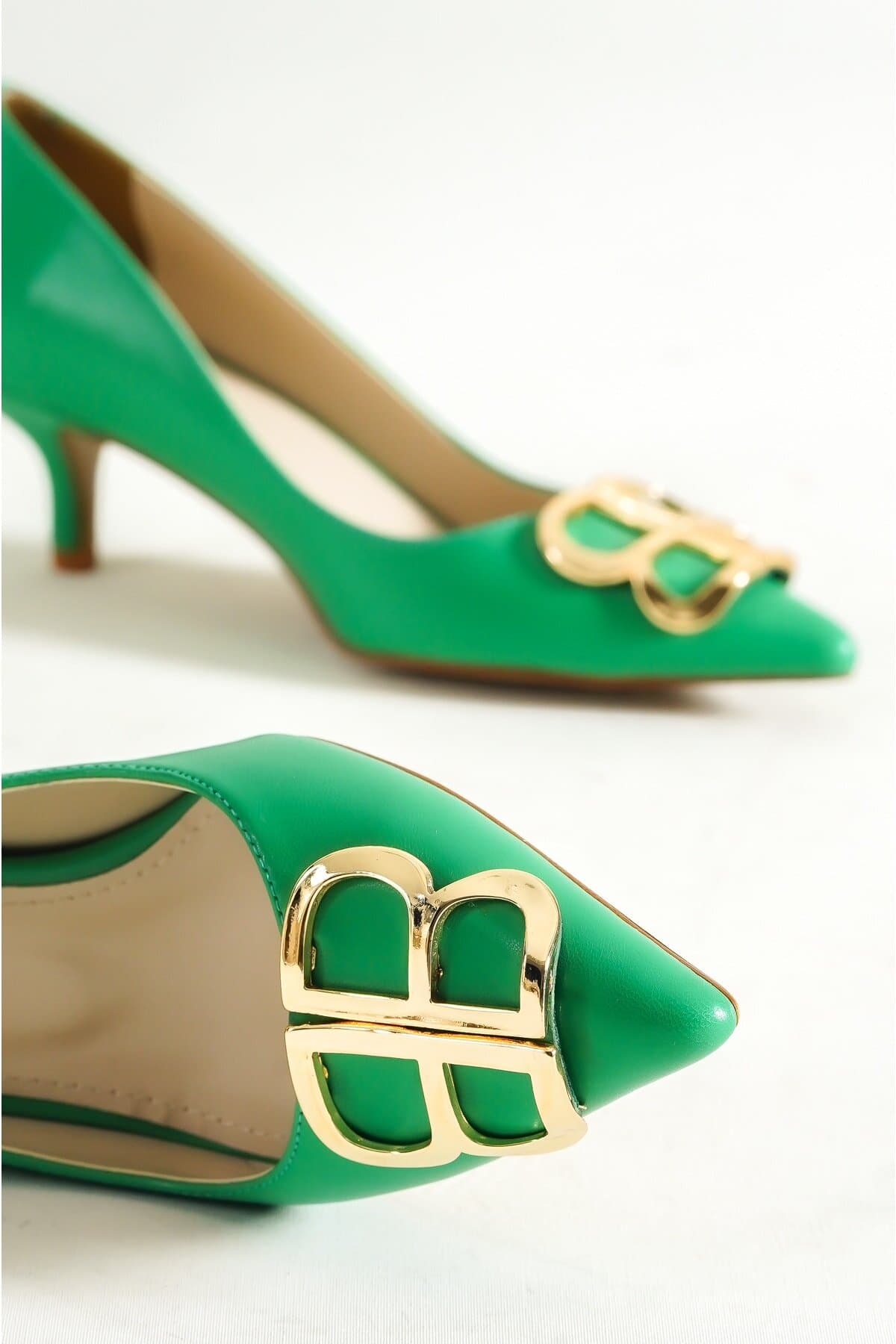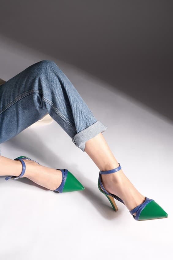Marjin Kadın Stiletto Sivri Burun Bilekten Bantlı Yeşil