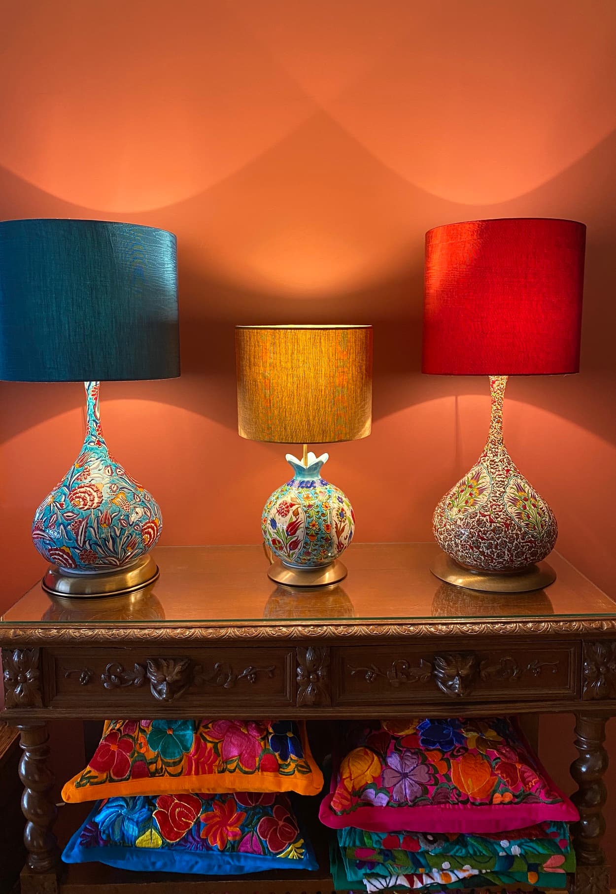ÖS: Son derece titiz bir insanım, kendimin beğenmediği hiçbir ürünü müşterime satmak istemem. Her ürün benim elimden ve onayımdan geçer. Bir deseni 200 kez çizdiğimi bilirim. Abajurlarımızın alt seramikleri Kapadokya bölgesindeki ustalarımız tarafından yapılıyor. Bu noktada sırlama ve renk çok önemli. El işlemesi kumaşlardan sonra en dikkat ettiğim şey seramikler.