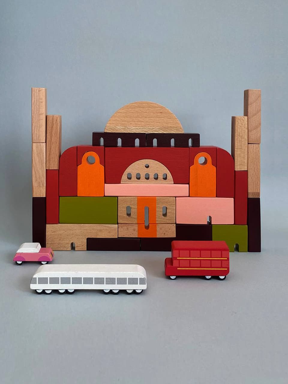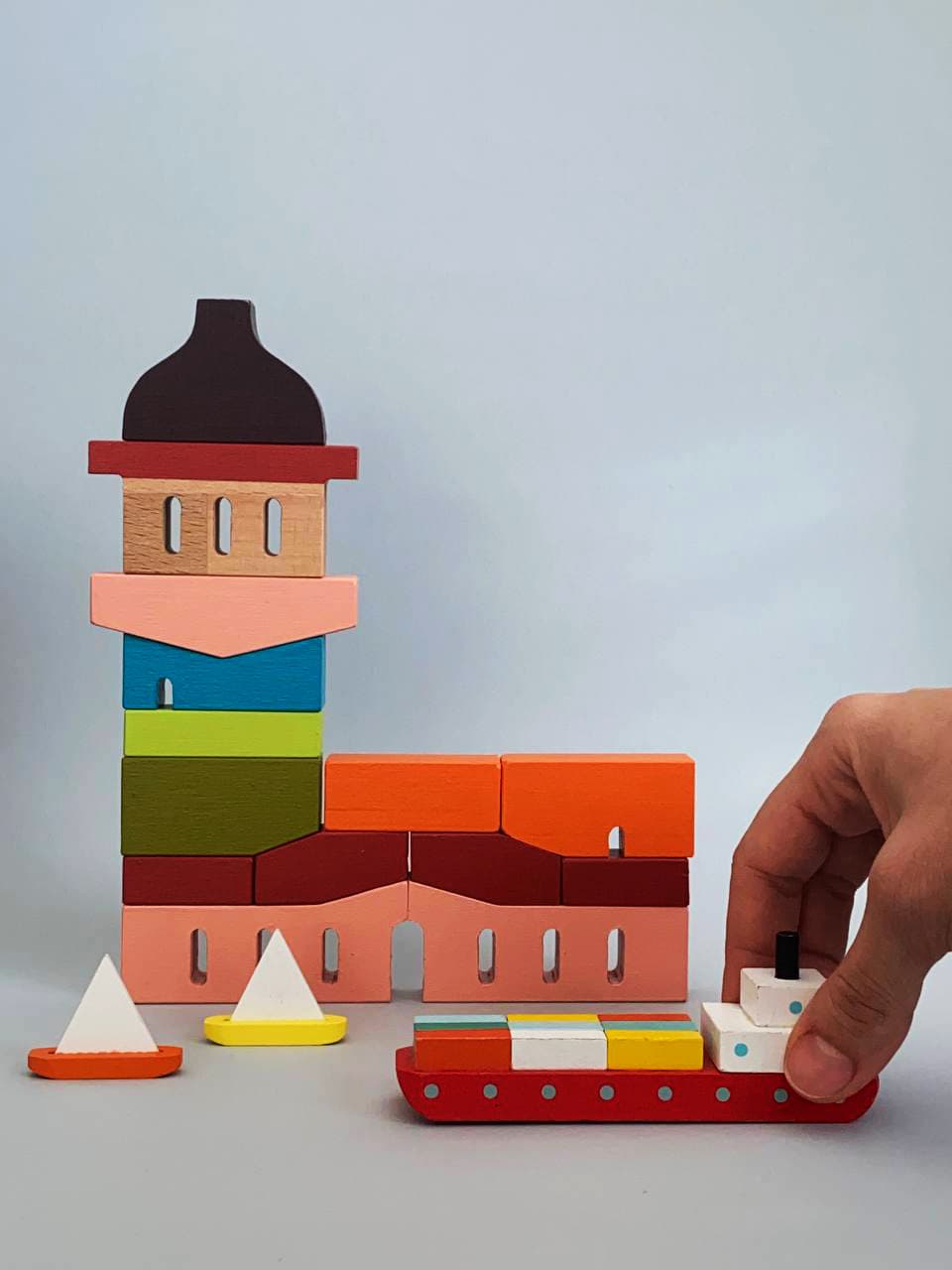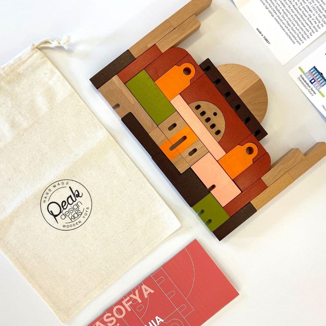 EŞB: Az önce de bahsettiğim gibi bir oyuncak markası oluştururken temel değişmezlerim oluştu. Bunlar; öncelikle malzemenin doğallığı ve kalitesi, çocuklara şehirlerin ya da ülkelerin kültürel sembolleri hakkında bilgi sahibi olmalarını oyunla sevdirerek sağlamak. Tüm bunlar ışığında herkesin sevdiği ya da bir anısına dokunan yapıları içselleştirerek yalınlaştırma yöntemiyle önce tasarlıyorum. Objeleri tasarlarken, tam olarak çağrışım yapmamasına özen gösteriyorum. Çünkü eğer bir parça, gerçek anlamda “bir şeye benzerse” çocuğun yaratıcılığını şekillendireceğine inanıyorum. Ardından parçaların birbirleriyle ilişkisi, çocuğun sadece yapı kurmaktan ziyade birbirleriyle geometrik formlarla denge kurması ya da kuramaması bununla ilgili bir şeyler öğrenmesini sağlamak bence çok önemli.