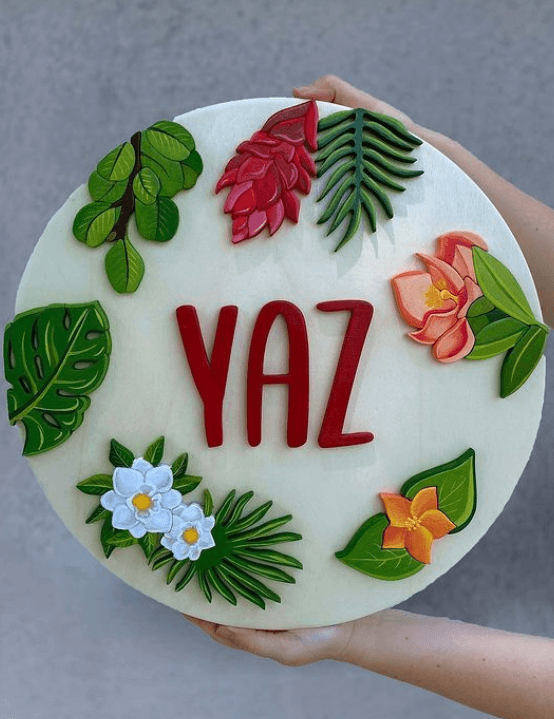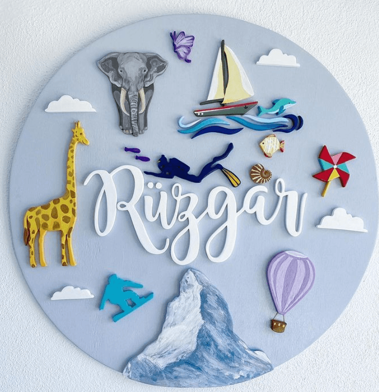 CÖB: Büyük oğlum Toprak doğduktan sonra kurumsal hayata bir süre ara vermeye karar vermiştim. Ama işi bıraktıktan kısa bir süre sonra bir şeyler üretme isteğiyle neler yapabileceğimi düşünmeye başladım. Sonra bir gün özellikle Amerika’da çok yaygın olan isim panolarının nasıl yapıldığı ile ilgili bir video izledim. Hobi olarak tasarımla ilgileniyordum. Sanatla çok içli dışlıydım. Hatta işletme yerine sanat üzerine eğitim almış olmayı hep çok isterdim. İçinde olmak ve uğraşmak istediğim tüm konular bu işte sanki bir araya gelmişti.