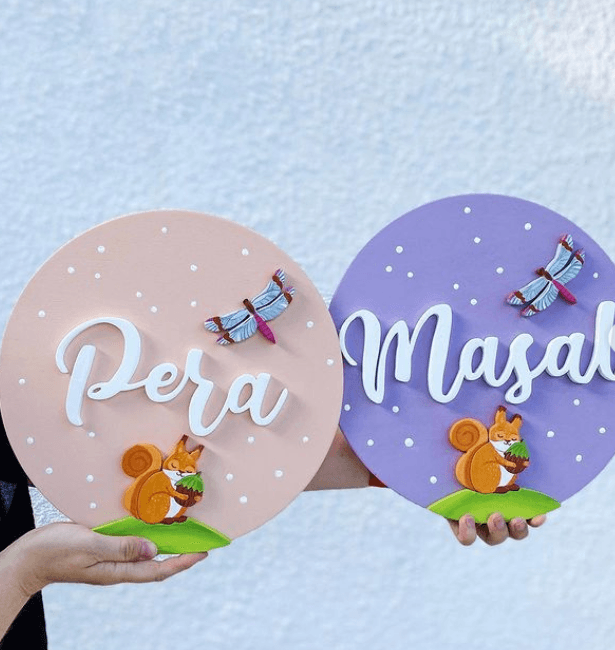 CÖB: Yola çıkarken aslında çocuk odaları ile birlikte her tür yaşam alanına yerleştirilebilecek dekoratif ürünler yapmaktı planım. Ama zamanla en çok sipariş aldığım ürün doğumlarda hastanede kullanılan kapı süsü ya da bebek – çocuk odaları için duvar ya da kapıya asılan isim panoları oldu.
