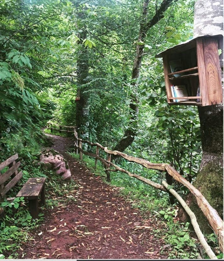 EÇ: Bu fikirlerin hepsi aslında kendi hayatlarımızdaki yaşanmışlıkların bir yansıması olarak düşünüyorum. Elimde kitap, ormanın içinde okuduğum romanın heyecanını yaşarken neden bir başkası aynı anı aynı heyecanı yaşamasın diyeydi bu sebeple patika kütüphanesini yaptım. Adı üstünde kitaplığı patikada yaptım karşısında oturacak bir bank yaptım. Aylardan temmuz ayıydı kendime serin bir gölgelik ararken kitap okuma ağacı fikri aklıma geldi, neden hep ağacın altını güneşten saklanmak için kullanırız ki dedim, ağaçla bütünleşmek ve onun enerjisini hissetmek gerekliydi. Daha önceleri ağaçlara sarılırdım ve artık onların bedeninde olmak fikri daha heyecan verici geliyordu. Şimdilerde hem sarılıp hem ruhunu yaşarken hikâyelere dalıp gitme vakti. Çocukluğumda önüme çıkar dağların ardını merak ederdim sonra o dağı aşıp karşıma çıkan diğer dağın ardı aklıma düşerdi. Dağlar dağları kovalardı. Yüzyıllardır var olan bu patikalar aslında bir dağı diğerine bağlayan dar ve sıcak, kendi yolculuğunu yapacak kadar alanı olan yerlerdi. Ve sonra neden birlikte keşfe çıkmayalım dedik.