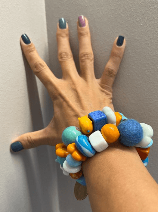 Renklerin kendimizi ifade etmek için, duygularımızı yansıtmak, tarzımızı, hatta kişiliğimizi ortaya koymak için oldukça değerli bir araç olduğunu düşünüyorum. Kendimi bildim bileli renklere sevdalıyım. Benim için renk, ruhumu besleyen, enerjimi yükselten, oldukça önemli bir kaynak. Yaşım kaç olursa olsun, hayatımın her döneminde, her ortamda renkler bana eşlik eder. Giyimimde iddialı ölçüde canlı renklere yer veririm, rengarenk dövmelerim vardır, her parmağıma ayrı renk oje sürer, senenin 6 ayı – mevsimlerin elverdiği ölçüde – el ve ayak bileklerime bolca takı takar, gökkuşağı gibi dolaşırım. Geçtiğimiz yaz içimdeki renk tutkusunu ve hayalini kurduğum tasarımları biraraya getirmeye karar verdim. Önce boş zamanlarımda hobi olarak bileklik yapmaktı niyetim, sonra ilk haftada 90 tane bileklik yapınca bir cesaret ‘neden olmasın’ dedim ve ‘oske’ markası bir anda doğdu. Kendim gibi, renklere değer veren, enerjilerini açığa çıkarmak isteyen insanların hayatına dokunmak istedim.