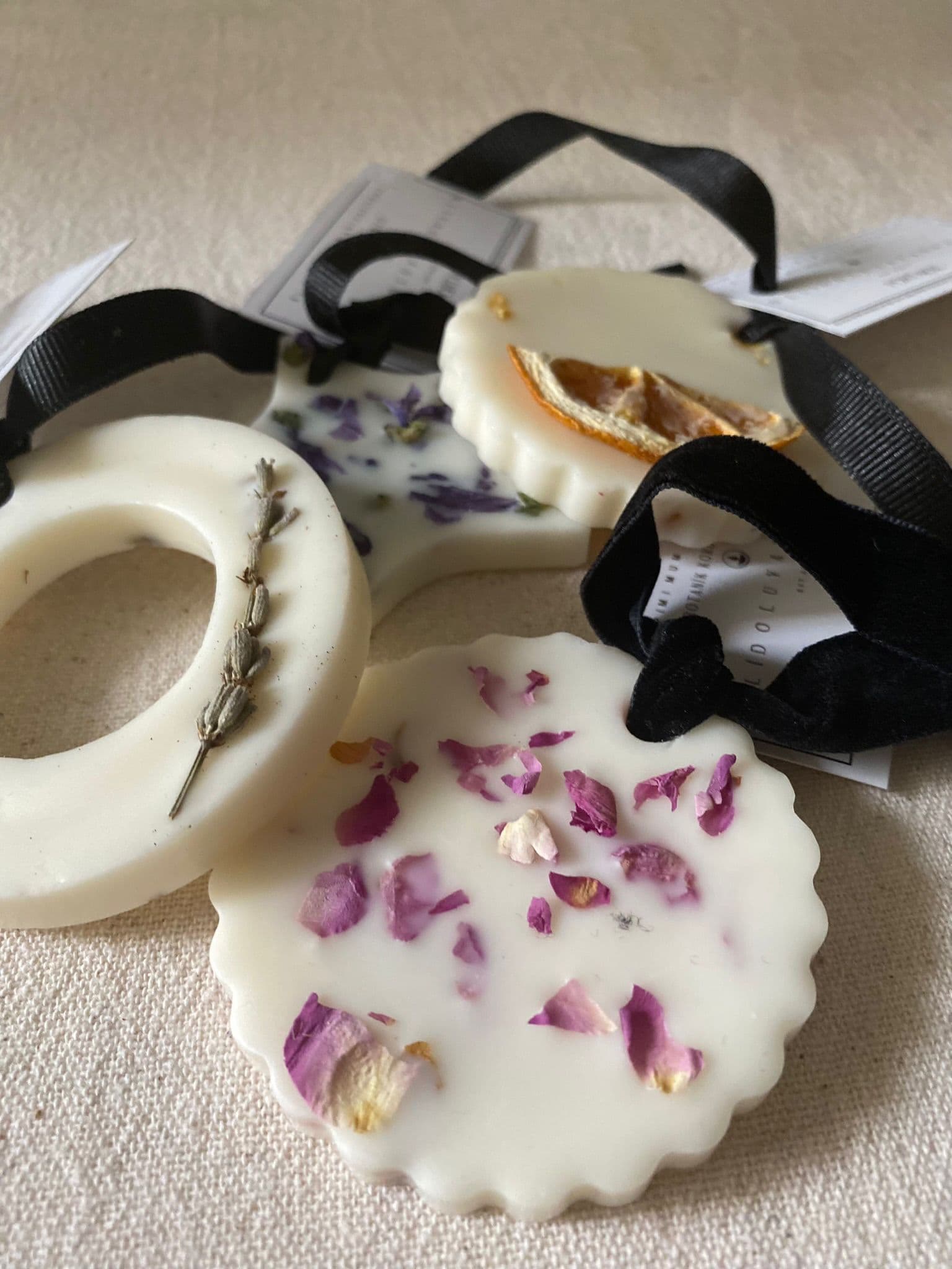 Beşinci ürünüm “Botanik Koku Tableti”: Dolap ve çekmece kokularına yeni bir alternatif diyebiliriz. Yine cocosoy wax ve uçucu yağlarla hazırlıyorum ve kalıplara dökerek üretiyorum, kuru bitkilerle de süslemesini yapıyorum. Küçük alanları kokulandırmak için ideal bir ürün.