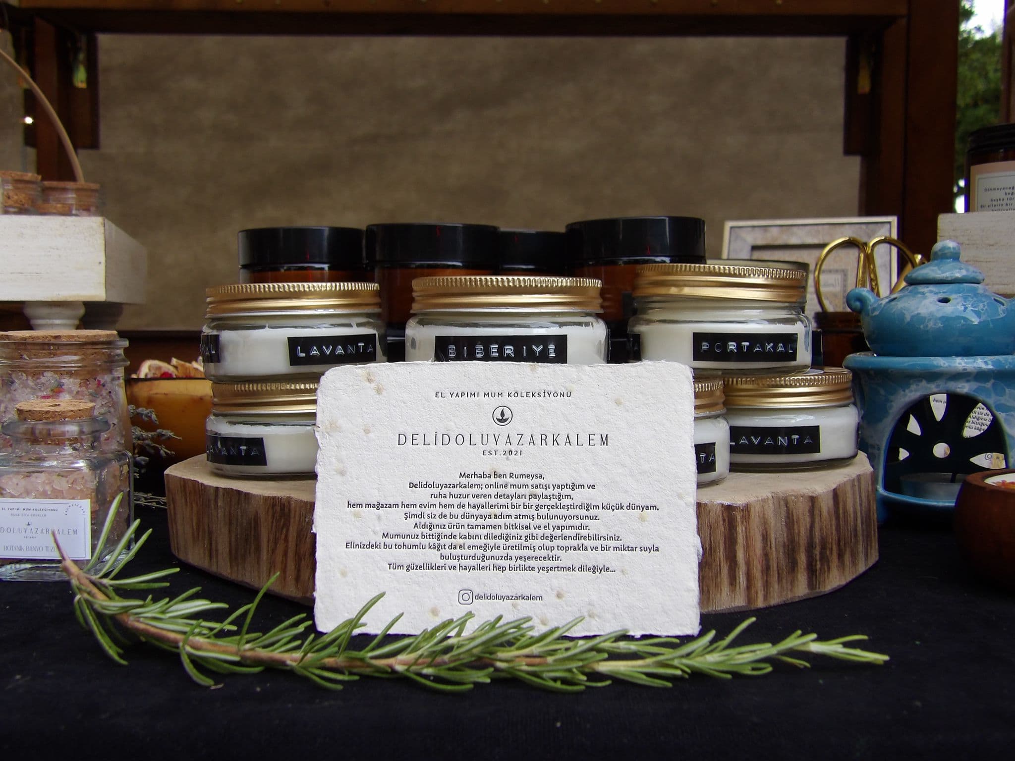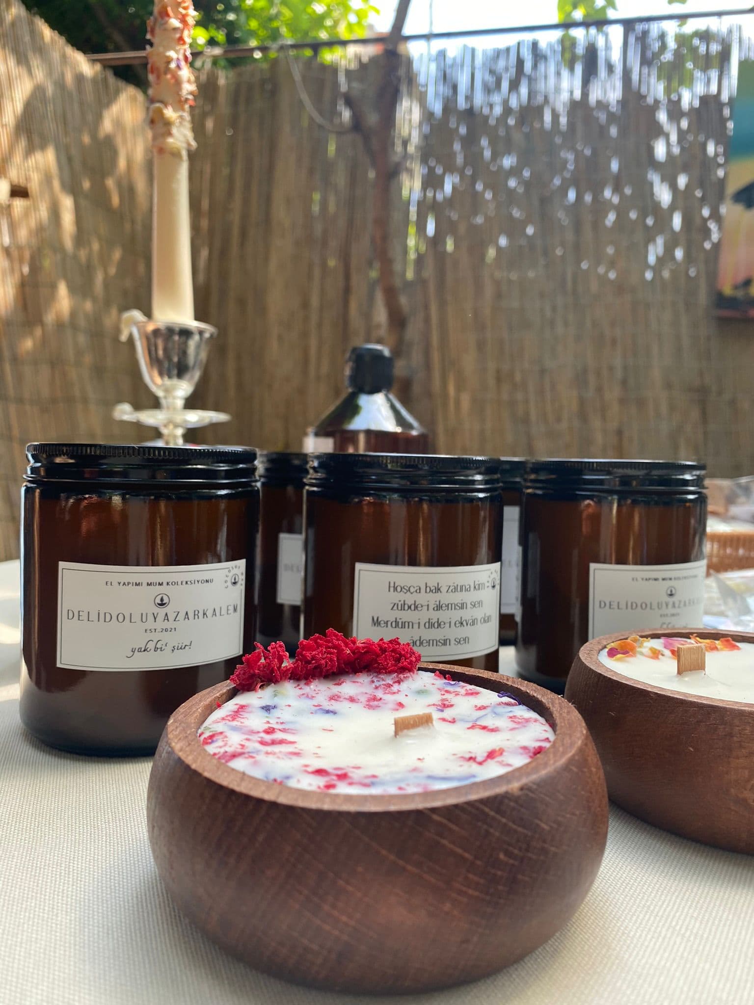 RB: Öğretmenliği çok zor bir kararla 2019 yılında bıraktıktan sonra kendime dönmeye, içimi keşfetmeye, bana iyi gelecek şeyler yapmaya başladım. Çeşitli atölyelere katıldım, farklı insanlarla tanıştım. Yazmak, okumak ve alanım dışında insanlarla vakit geçirmek bana çok iyi geldi. Bir süre ara verdikten sonra yeniden “bir şey” yapma fikri kemirmeye başladı beni. Bir ig sayfası açtım ve orada edebiyat sanat paylaşımları yapmaya karar verdim. Orhan Veli’nin bir şiirinde “Delidoluyazarkalem” diye bir dize geçer, tam beni tanımlıyor. Hem deli dolu hem yazar çizer. Sayfayı açıp paylaşım yapmaya başladım. Fakat bu bir üretim değildi ve beni tatmin etmedi. Evde sürekli mum yakıp buhurdana mis kokulu uçucu yağlar ekleyerek kitap okuyup müzik dinlediğim bir vakitti. Mum sipariş etmek için internette gezinirken sırf bir marka olduğu için fahiş fiyatlar isteyen üstelik tamamen kimyasal madde içeren mumlarla karşılaşınca kafamda bir ışık yandı. Mum nasıl yapılır, ve nasıl bizlere ulaşır? Bunu araştırmaya başladım. Çeşitli eğitimler aldım, bu eğitimleri alırken aromaterapiyle tanıştım. Kapı kapıyı açtı. Sonra da mum üretmeye başladım, her geçen gün yeni bir şey öğreniyor ve öğrendiklerimi de hızla uyguluyordum. En önemlisi de ürettikçe çok daha iyi hissediyordum. Çevremdekiler de bana inandı ve hep desteklediler, onların inancı ve desteği olmasa bugün bu konuşmayı yapıyor olamazdım muhtemelen. Mum yapmak bende bir tutkuya dönüştü adeta.. Aradığım buymuş diyordum ve gözlerimdeki ışıltıyı herkes fark ediyordu. Sırf mum yapmak da değil, kokuların dünyası, bitkilerin faydaları…Bunlar hem tefekkürümü artırdı hem de dünyaya bakışımı değiştirdi. Öğrendikçe öğrenmek istediğim bir deryaya daldım. Uzun zaman sonra severek, aşkla yapabileceğim bir işim olmuştu. Mesleğimle de bu işi birleştirince Delidoluyazarkalem “yak bi’ şiir!” mottosuyla bir mum markası oldu. Ayrıca aldığım eğitimlerle ürünlerim de zamanla çeşitlendi ve mumdan başka aromaterapik banyo tuzları, dolap kokuları ve masaj yağları da eklendi.