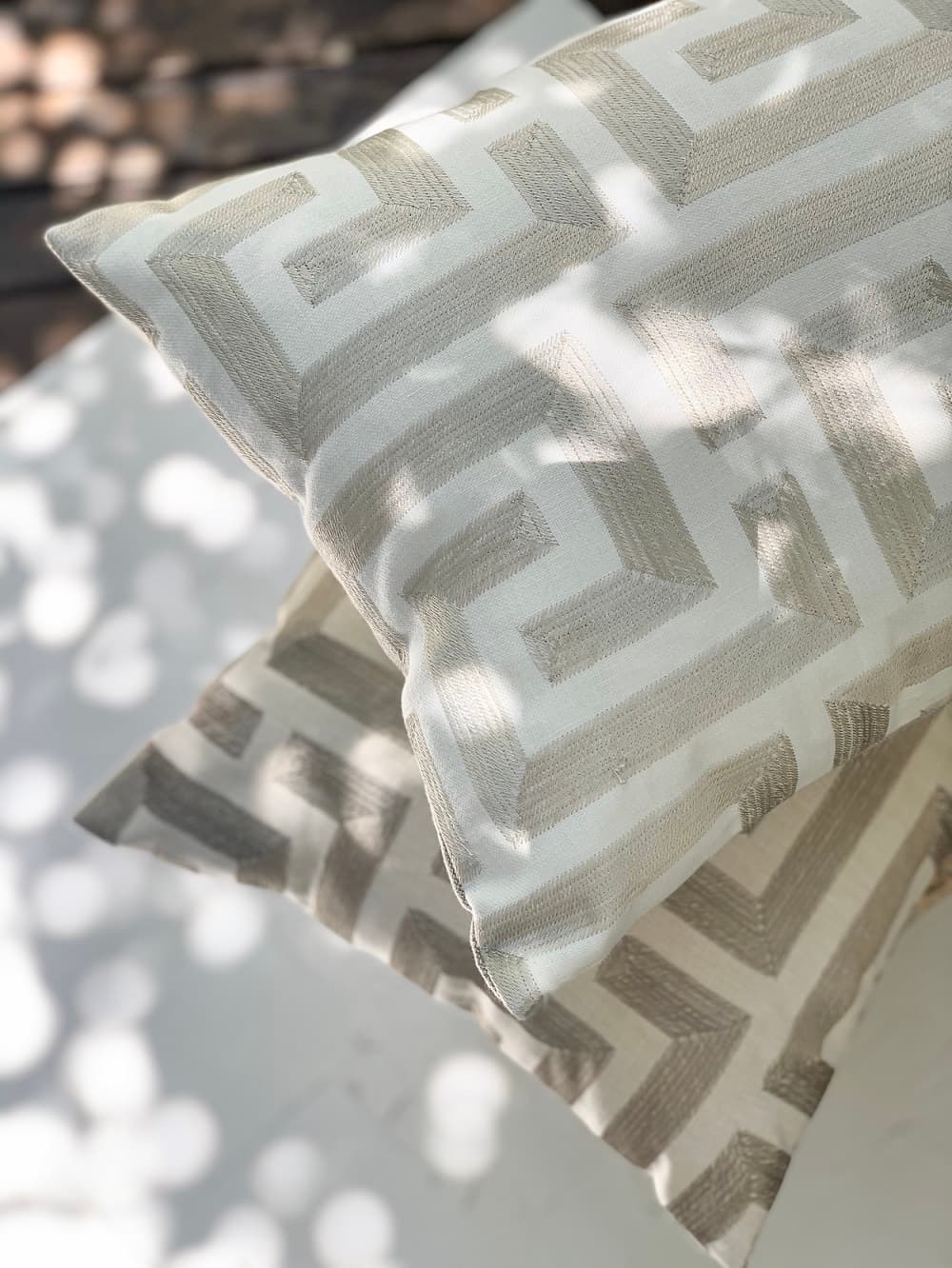S.K.B: Genellikle keten ağırlıklı çalışıyoruz. Markamız, Akdeniz kültürünün rahat ve güçlü doğasından ilham alıyor. Ruhumuz yazlık bu da ürünlere bir hayli yansıyor, kumaş olarak ketenlerle çalışmamızın başlıca sebebi de budur. Keten kumaşın doğallığı ve rahatlığı çok hoşumuza gidiyor özellikle sofralara en çok ketenin yakıştığını düşünüyoruz. Yastıklarımızda ise yine keten görüntüsünü bozmadan birazda kırışmanın önüne geçebilmek adına keten karışım kumaşlar tercih ediyoruz.