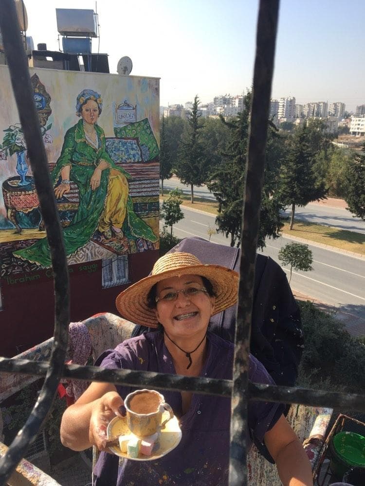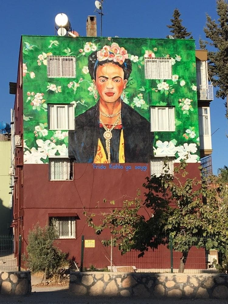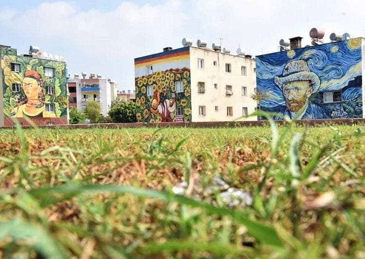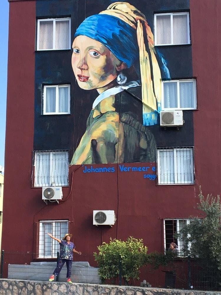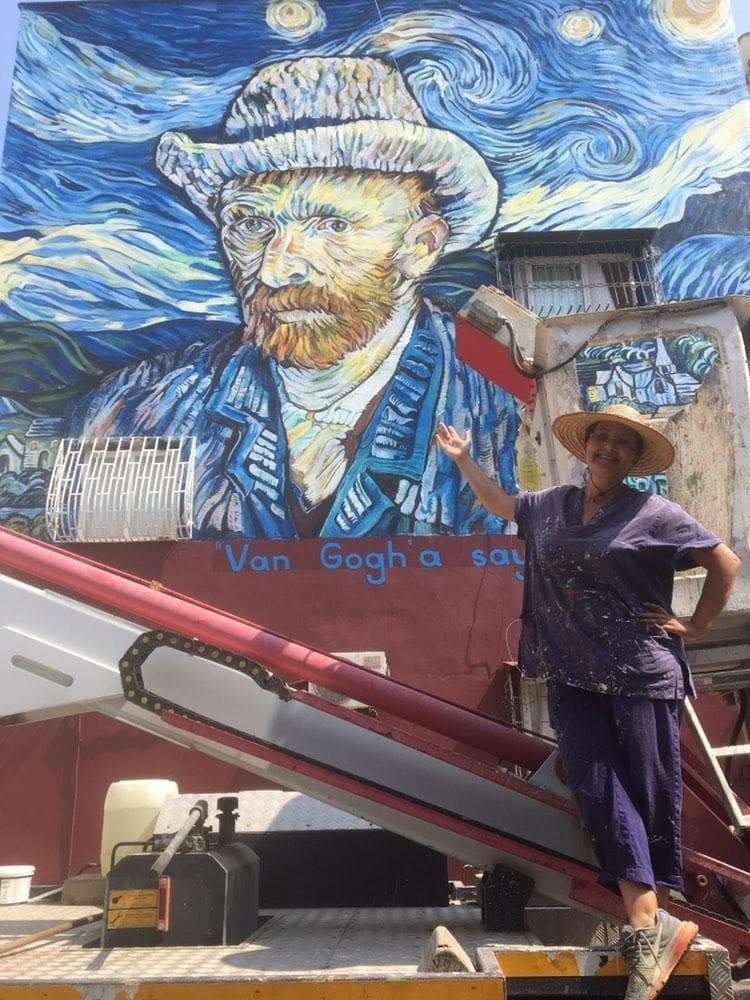 Ressam Nazife Bilgin Hazar binalara ve duvarlara Osman Hamdi Bey, Van Gogh, Picasso, Neşet Günal, Frida Kahlo, Johannes Vermeer, Salvador Dali, Leonardo Da Vinci, Auguste Renoir, Diego Rivera,...