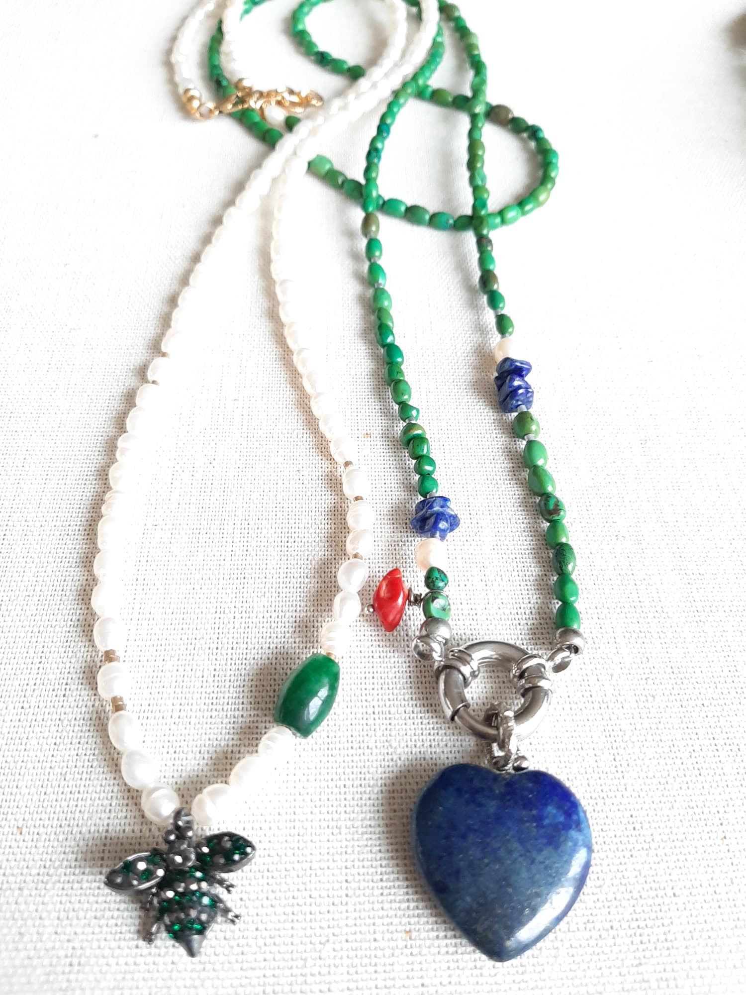 NO: Tasarımlarımı; doğal taş, inci, sezon trendi zincirler, ahşap boncuklar, el işçiliği cam boncuklar, metal malzemeler (gümüş ve altın rengi) ve püsküller ile hazırlıyorum.