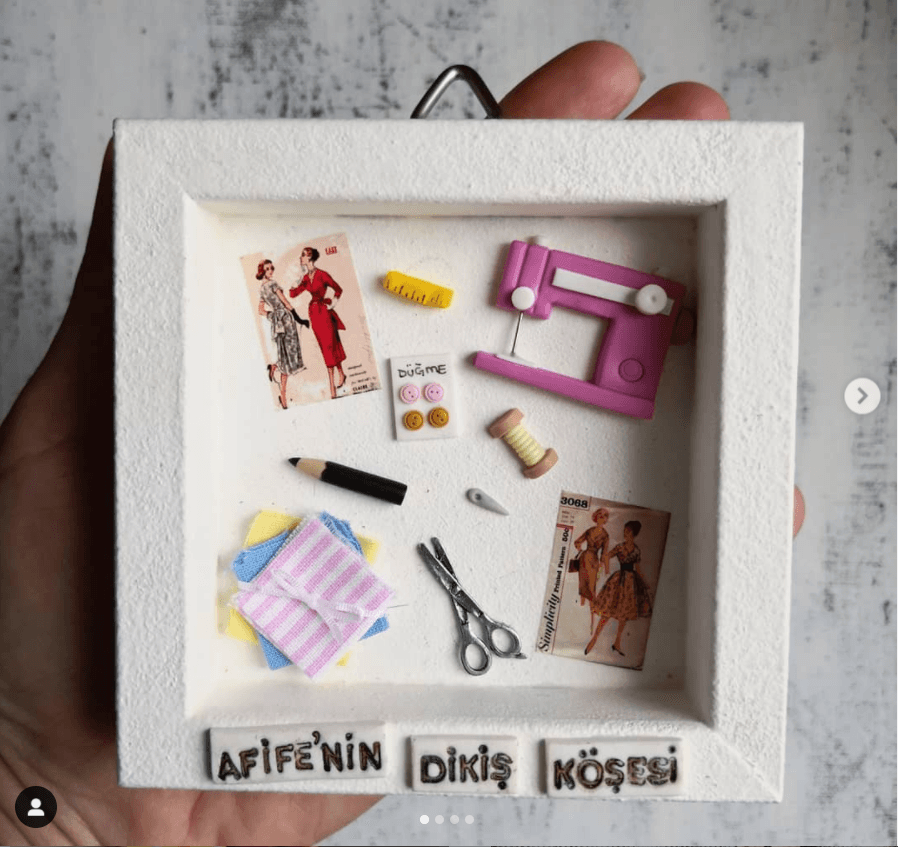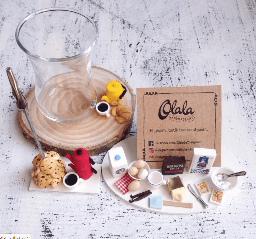 Bununla birlikte; eşim de, ben de iç mimarız. 2016 yılında bazı sebeplerden ötürü mesleğimizi bırakıp tamamen minyatür ürün üretmeye odaklandık. Kendisi de çok uzun zamandır ölçekli modelcilikle uğraşıyor. O sebeple, konuya olan ilgisi, desteği ve teknik bilgisi bizi farklı şeyler üretmeye yönlendirdi. Olala handmade markasına bakınca tek kişi tarafından idare ediliyormuş gibi görünse de, işin mutfağında 2 kişi olarak yer alıyoruz. Keyifle üretiyoruz, paylaştıkça mutlu oluyoruz.